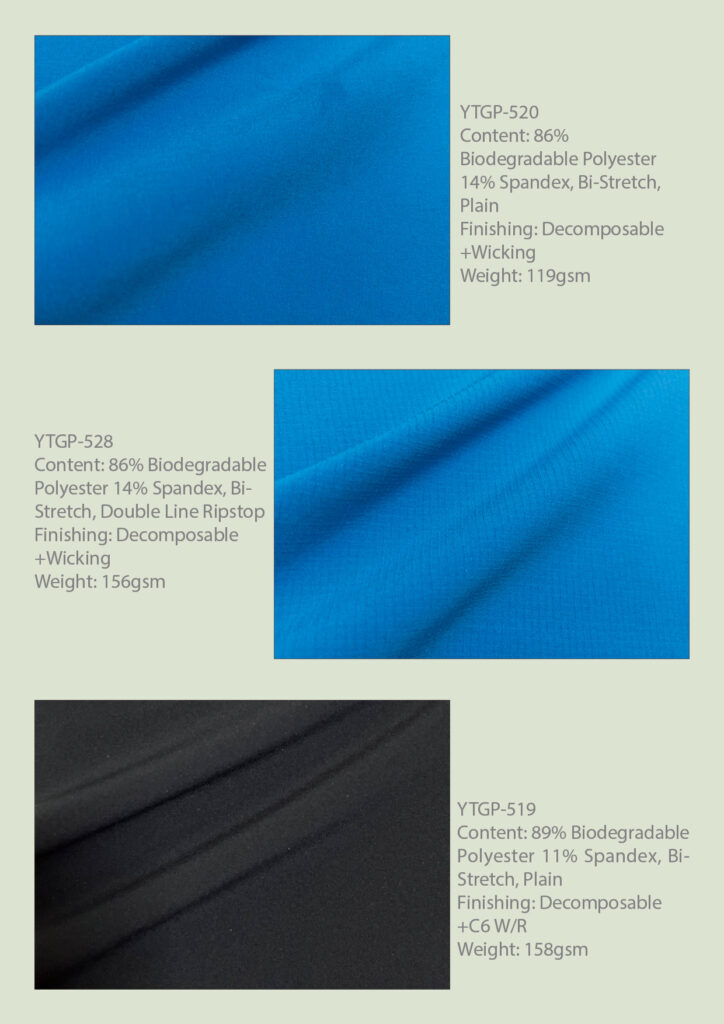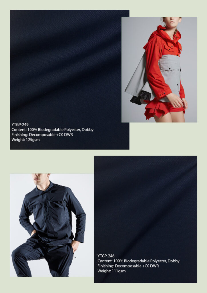 Yuantex biodegradable collection was launched with GRS-approved fabrics designed for lifestyle, fashion, and outdoor categories. By adding the organic additives, which enhanced the fibres to be more attractive to the naturally-occurring microbes; Yuantex biodegradable fabrics will break down via the anaerobic process, no matter in the ocean or landfill, and return the material to the natural elements.